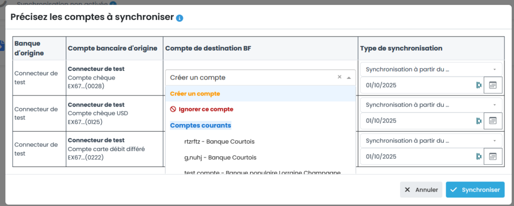 Vous pouvez aussi suivre le process de synchronisation bancaire pas à pas, afin de vérifier si vous ne vous êtes pas trompé.
